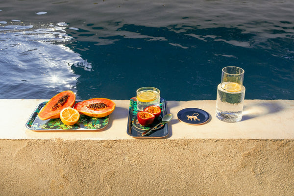 The Croco Wild Coasters Tray by All the Ways to Say blends functionality with artistic jungle charm. With its compact round size and vibrant illustrations featuring monkeys and lush greenery, it is both decorative and practical. Perfect to protect your surfaces while adding a joyful accent to your drinks and snacks.