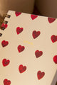 The Heart Spiral Notebook by All the Ways to Say features a charming pattern of red watercolor hearts on a soft cream background, highlighted with elegant gold foil. With its spiral binding and lined pages, it’s as functional as it is delightful.