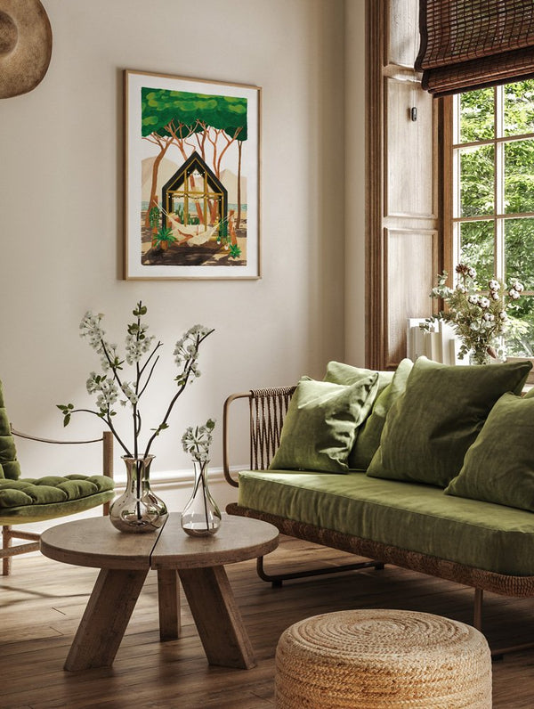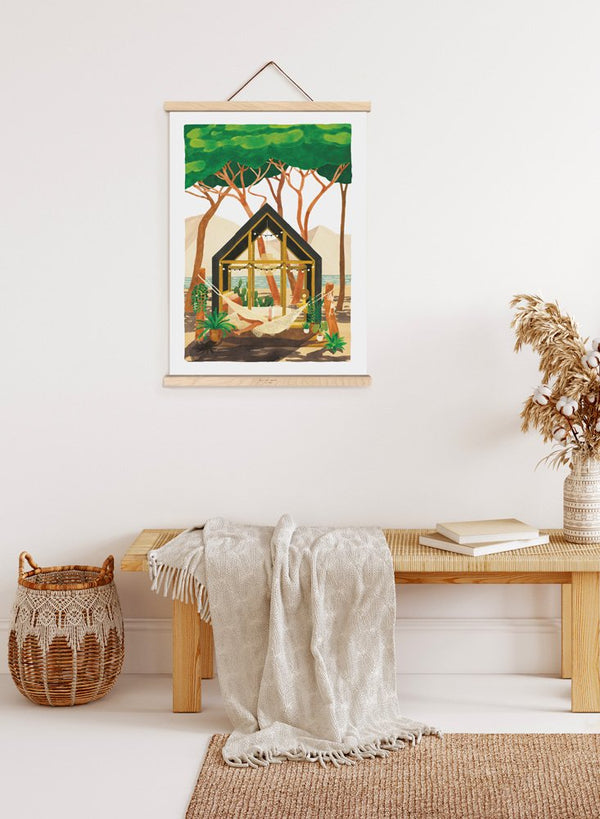 Perfect for lovers of nature, travel, and coastal getaways, this illustration brings a relaxing and sunny atmosphere to any interior.