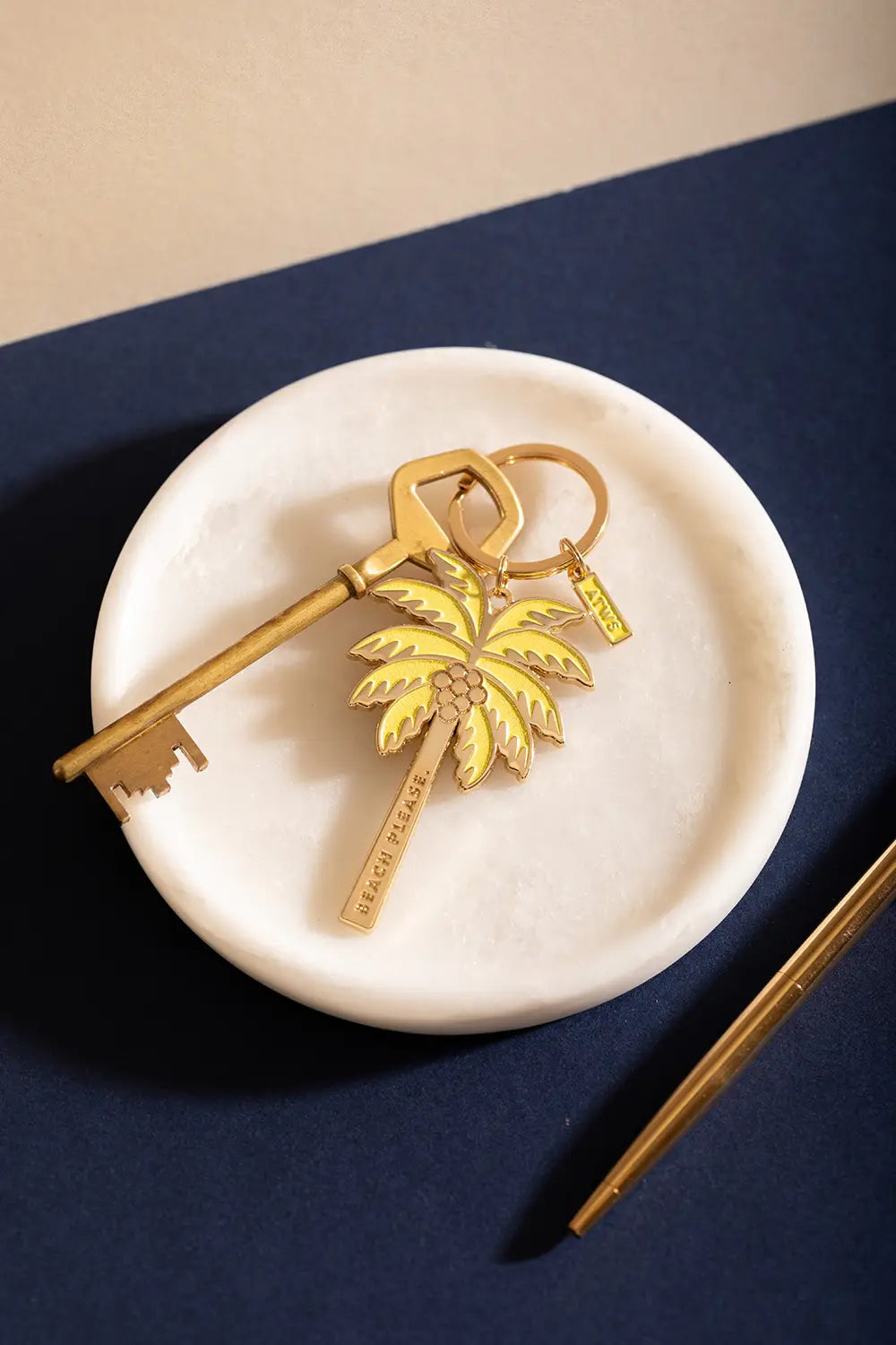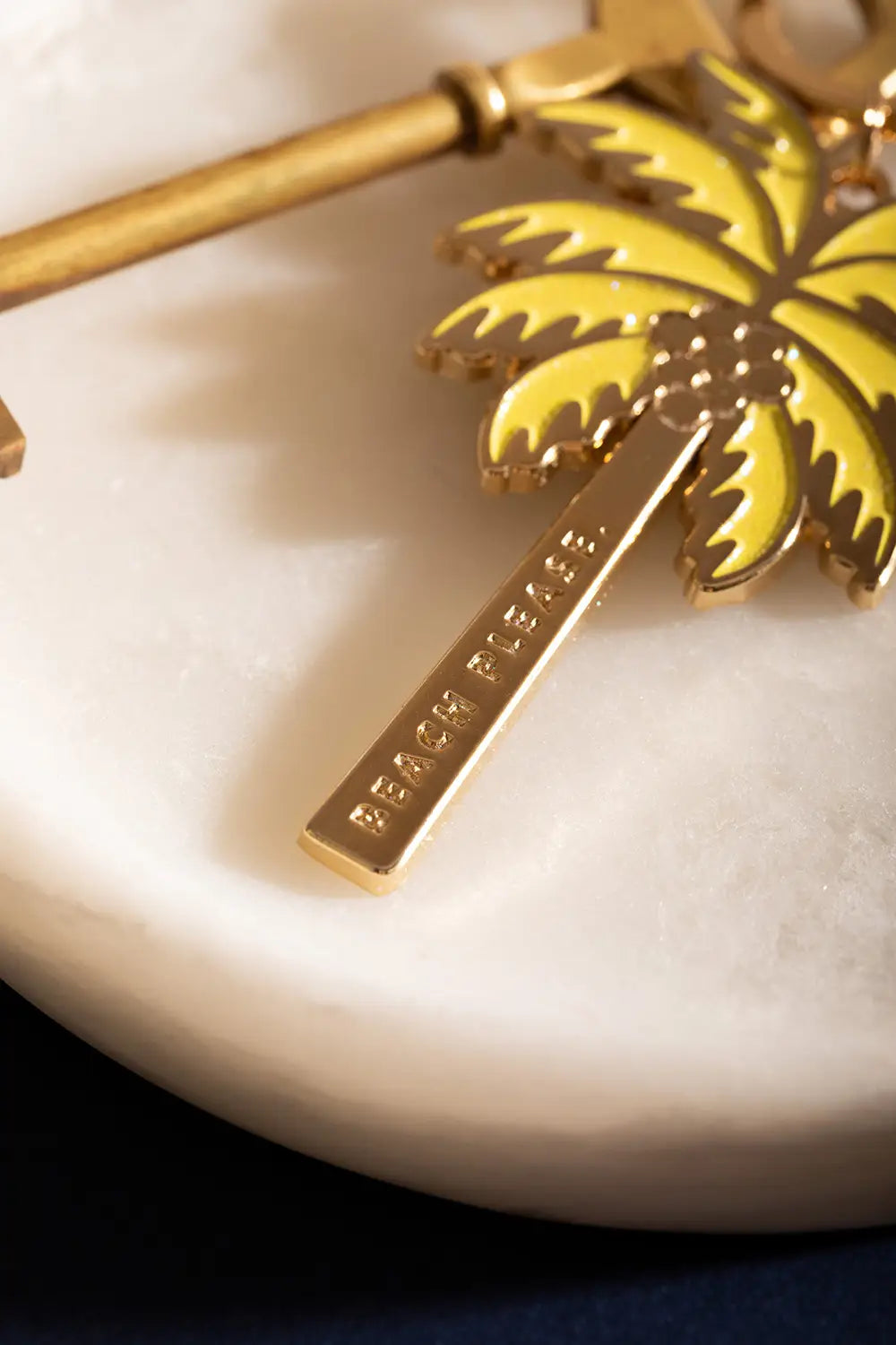 Escape to the tropics every time you reach for your keys with the Beach please — Keychain by All The Ways To Say. This elegant accessory features a beautifully detailed palm tree design with a radiant gold enamel finish. With the playful and sun-drenched message "BEACH PLEASE" engraved along the trunk, it’s the perfect charm for beach lovers, travelers, and those who are always dreaming of their next seaside getaway.