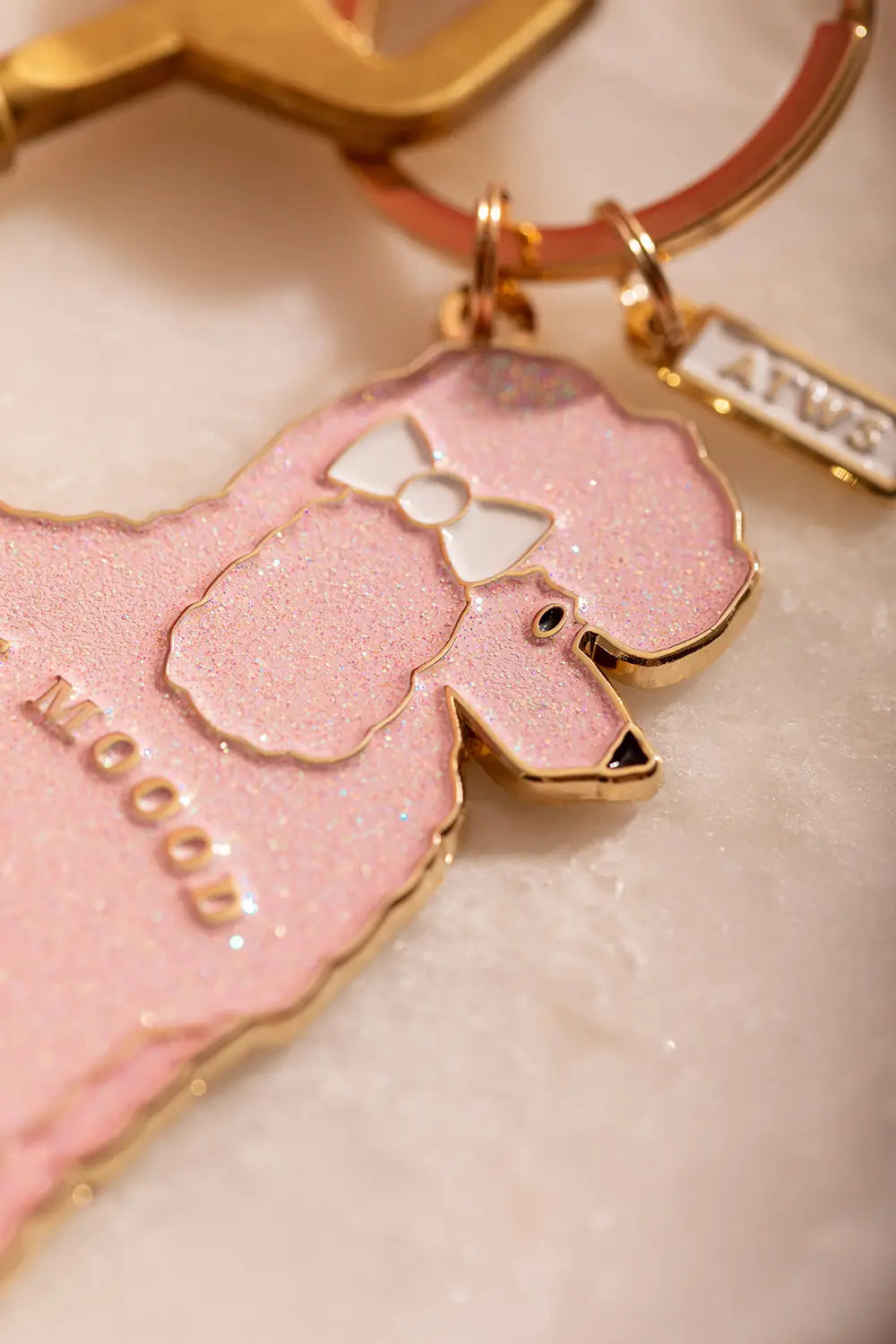 Flaunt your unique attitude with the Poodle mood — Keychain by All The Ways To Say. This sophisticated accessory features a stylish pink poodle adorned with a dainty white bow and the gold-engraved message "POODLE MOOOD". With its high-quality gold enamel finish, it adds a playful yet luxurious flair to your keys or your favorite handbag. It’s the perfect gift for those who own their elegance with a wink.