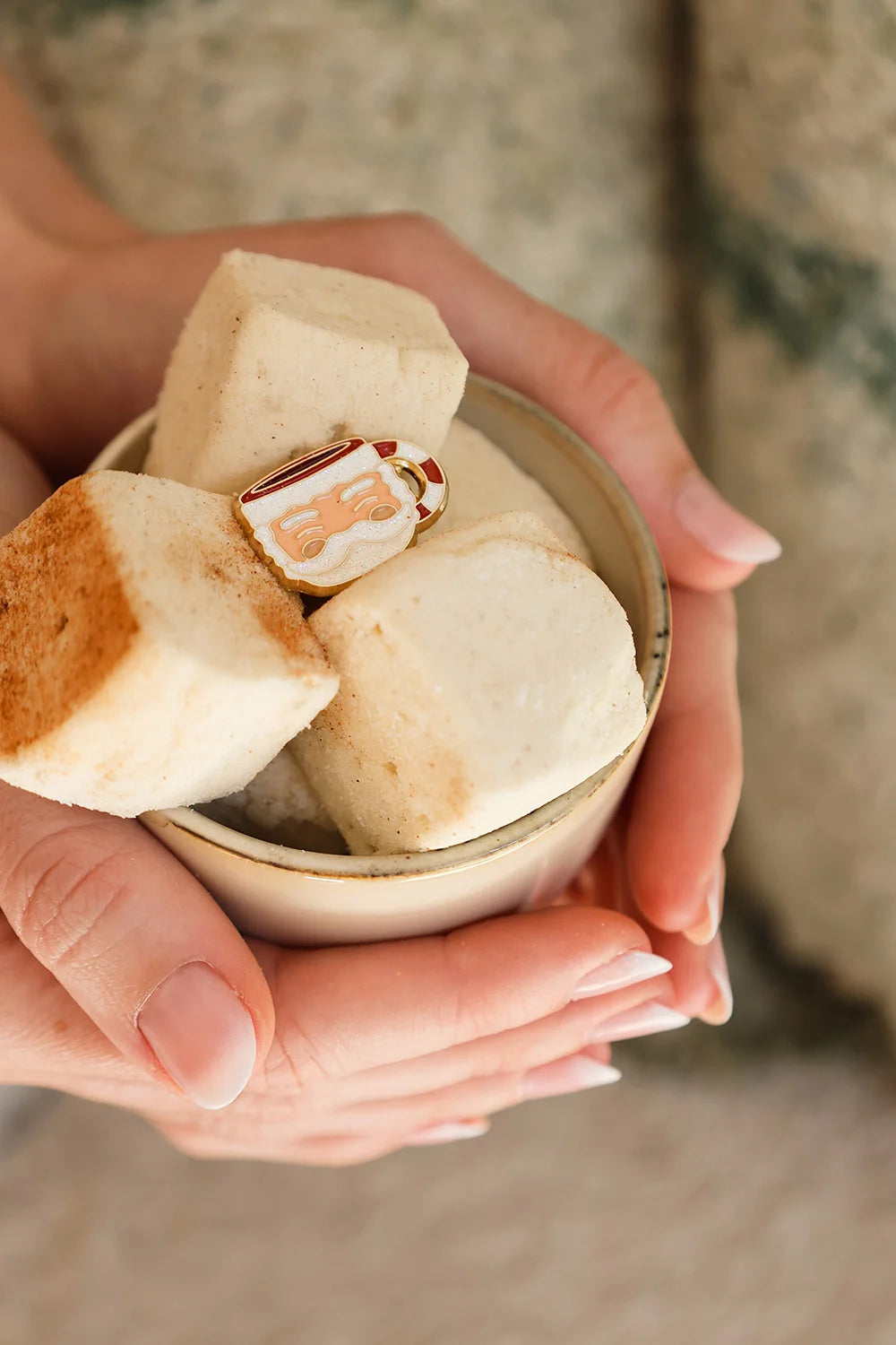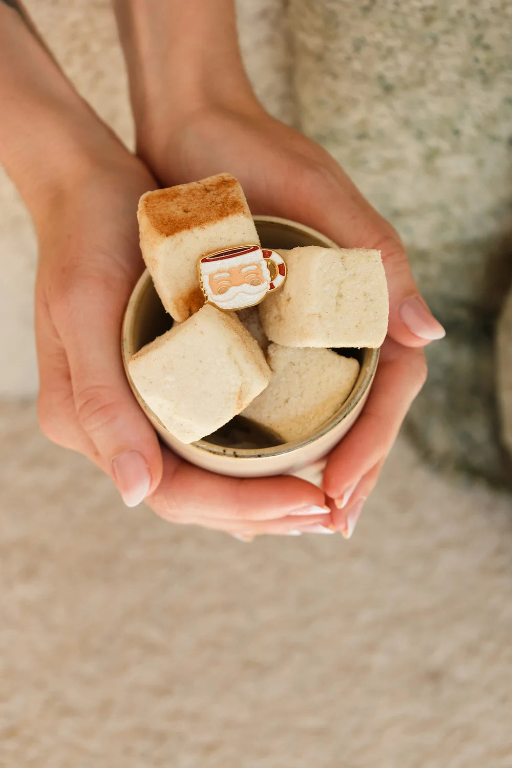 With its golden details and jolly Santa mug design, the Santa Cup – Pin by All the Ways to Say is a warm reminder of winter’s sweetest moments. Perfect for your holiday outfit or as a thoughtful gift, it brings a sprinkle of cheer wherever it goes.