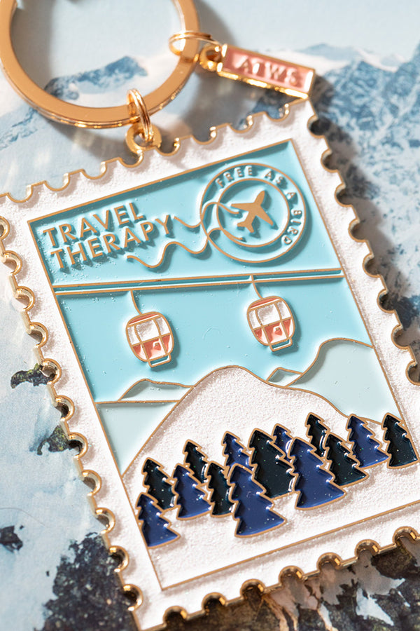 Évadez-vous vers les sommets avec ce porte-clés Alpes Therapy. Son design en émail et sa finition en émail doré capturent la sérénité et la beauté des montagnes, parfait pour les amoureux de la nature et des grands espaces. Accrochez-le à vos clés ou à votre sac pour une touche apaisante et élégante au quotidien.