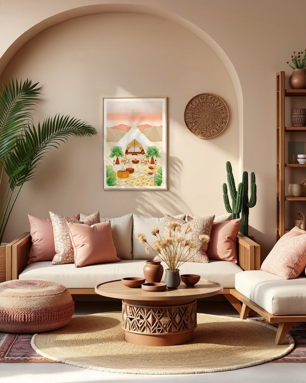 Cette illustration mêle le charme du camping à la douceur du slow living. Idéale pour créer une atmosphère chaleureuse et inspirée de la nature.