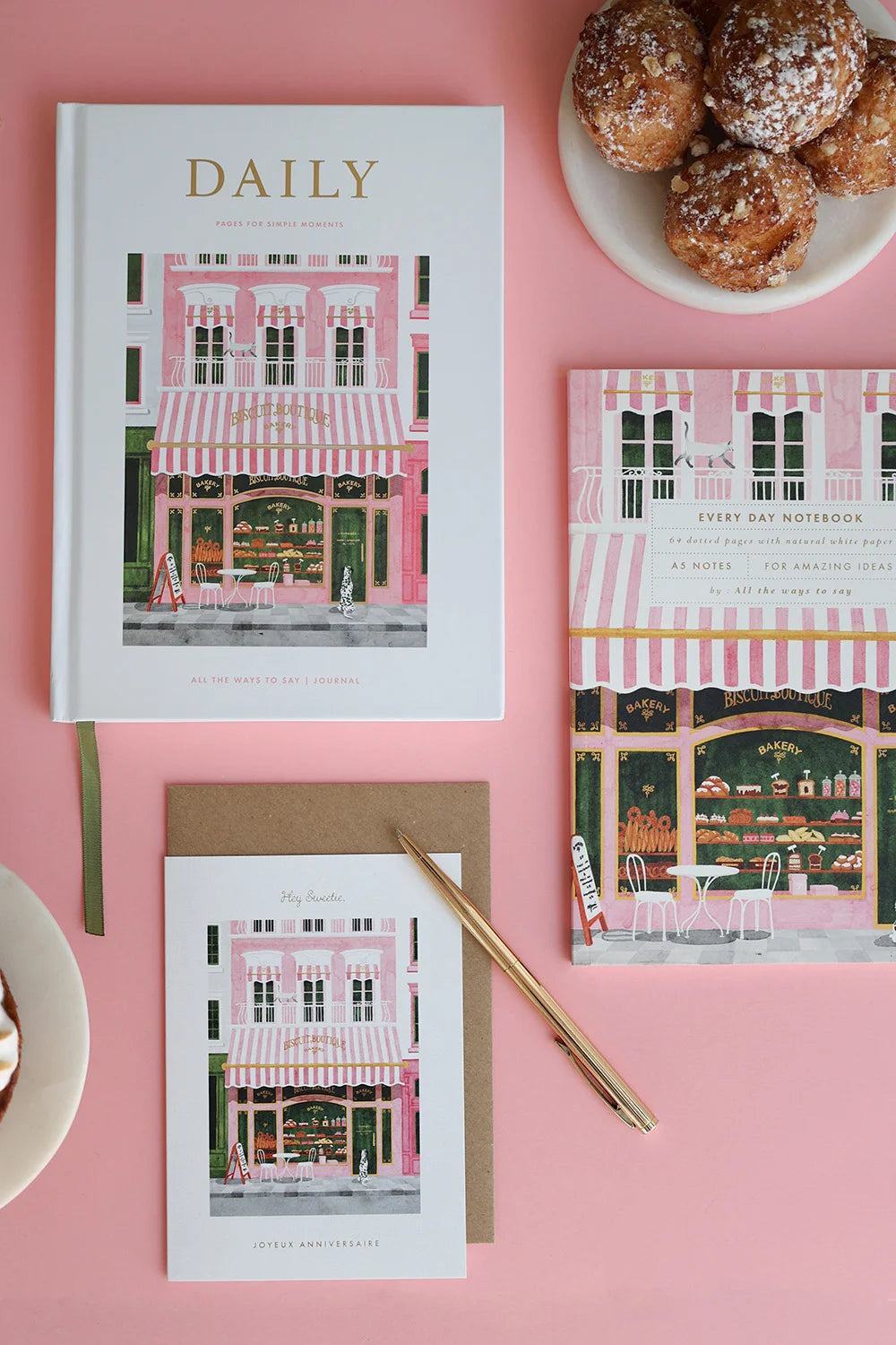 🎂🍰 Rendez un anniversaire plus gourmand avec la carte de vœux Bakery Birthday d’All the Ways to Say ! Illustrée d’une scène de boulangerie remplie de gâteaux et de douceurs, sublimée par des détails en dorure, elle est la recette parfaite pour souhaiter un joyeux anniversaire.
