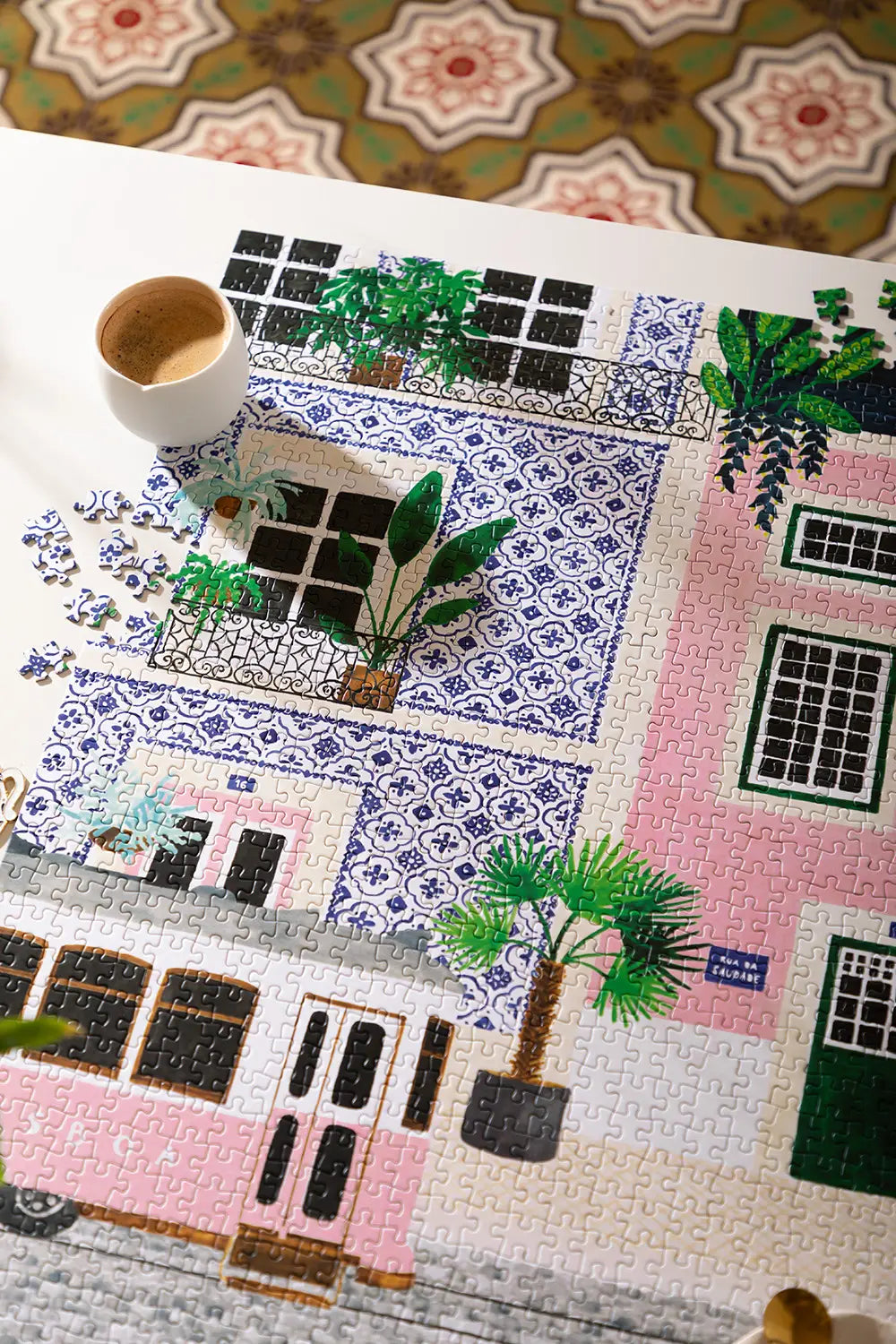 Préparez vos bagages pour un voyage créatif avec le Puzzle Lisboa (1000 pièces) par All The Ways To Say. Cette illustration vibrante capture l'essence même de Lisbonne : de son tramway iconique rose et blanc grimpant les collines aux magnifiques motifs d'"azulejos" bleus et blancs qui ornent les façades historiques. Entre plantes méditerranéennes luxuriantes et architecture baignée de lumière, ce puzzle est un défi gratifiant et relaxant pour les voyageurs et les passionnés d'art.