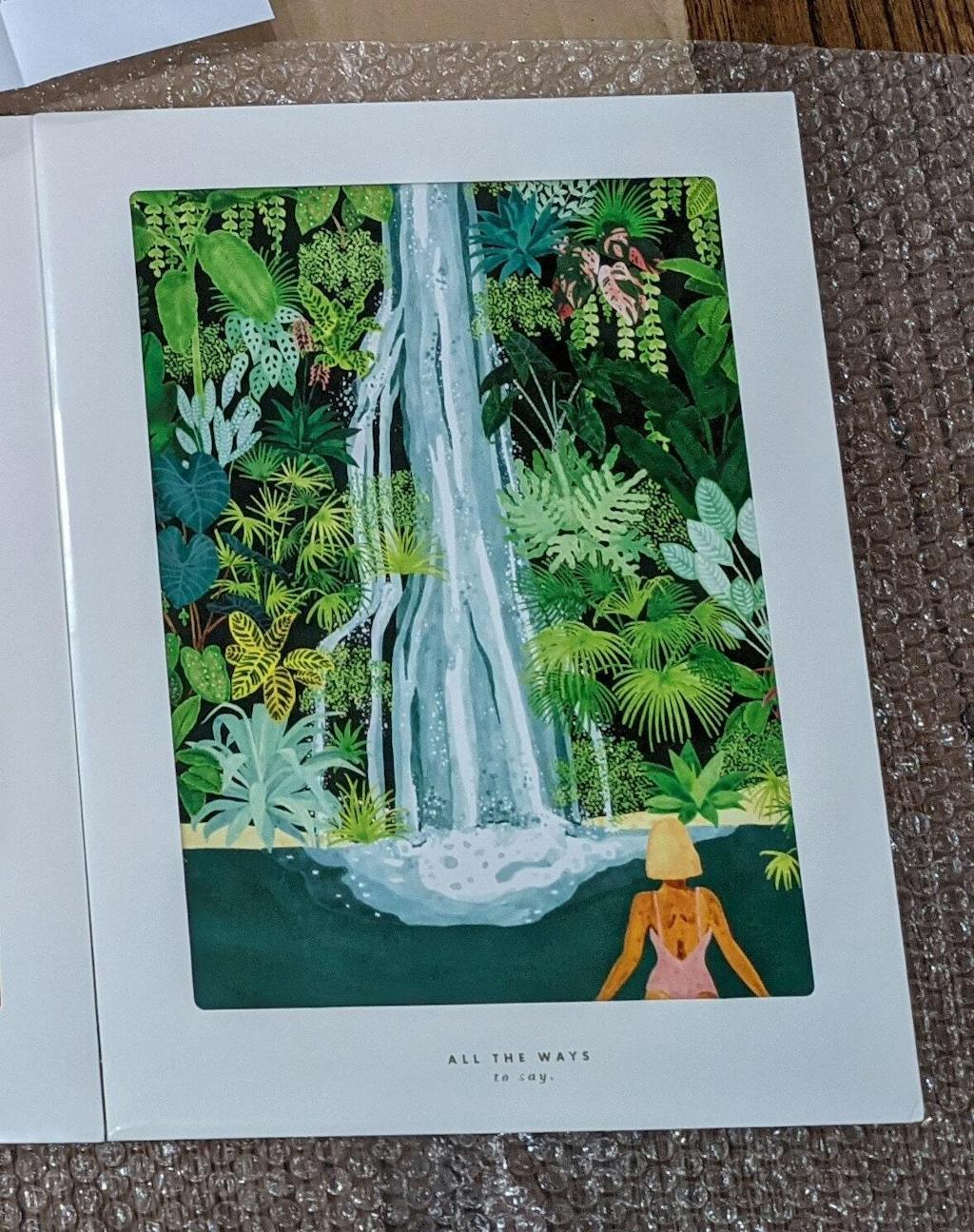 Conçu par All the Ways to Say, ce dessin Ă lâaquarelle rend hommage Ă la magie des cascades tropicales.