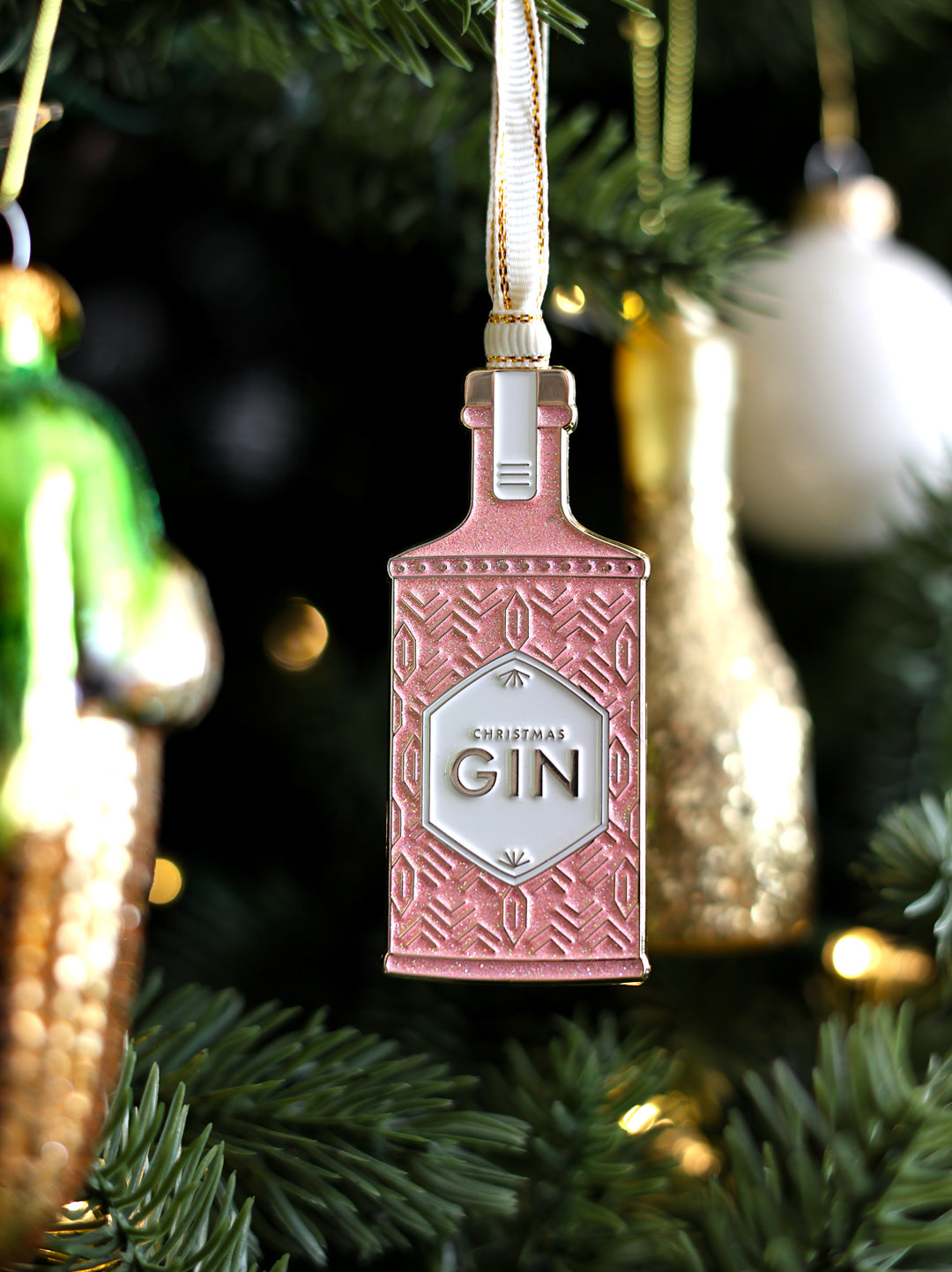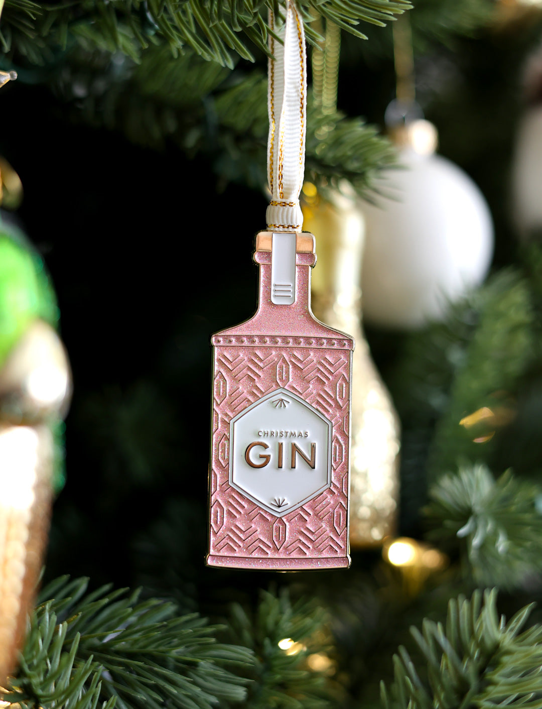 L’ornement Christmas Gin de All the Ways to Say apporte éclat et humour à votre décoration de Noël. En forme de bouteille de gin rose et orné de l’inscription « U had me at gin », cet ornement en émail peint à la main est à la fois élégant et ludique. Idéal pour ceux qui aiment mêler esprit festif et clin d’œil plein de charme.