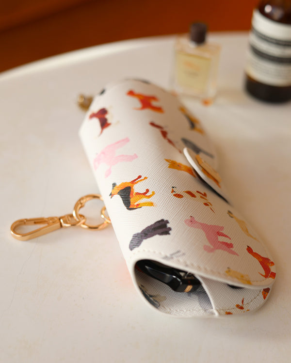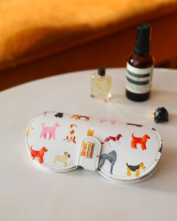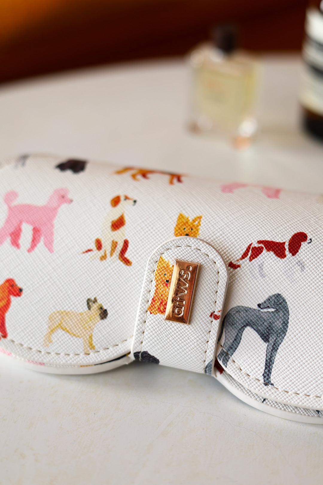 Il y a des jours où le bonheur remue la queue. Conçu avec soin, le Dogs – Clip Case signé All The Ways To Say rend hommage à nos compagnons à quatre pattes à travers un imprimé plein de charme et de bonne humeur. Réalisé en cuir PU imprimé et orné d’un logo en laiton émaillé doré, il s’ouvre largement grâce à son fermoir magnétique pour protéger vos lunettes avec style et tendresse.