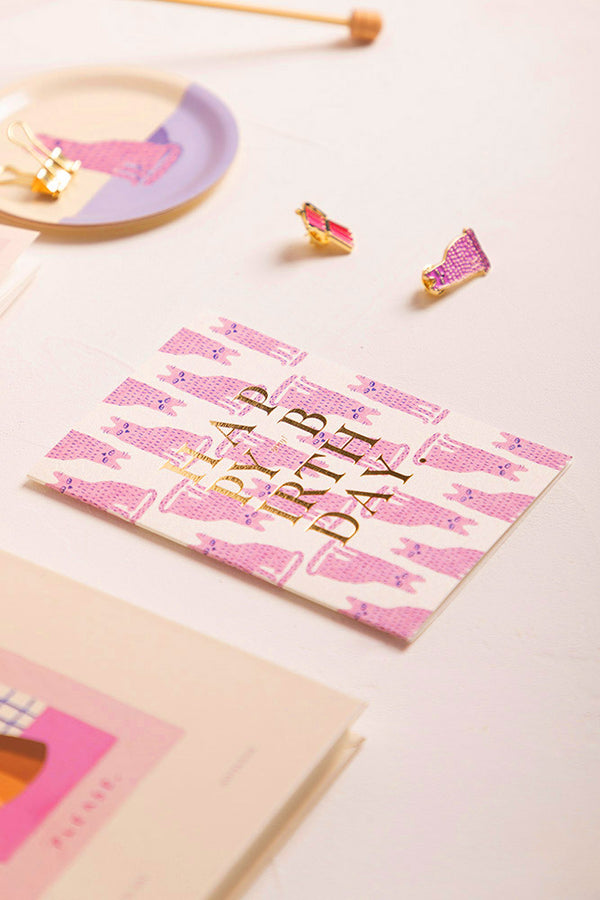 🐱✨ La carte de vœux Happy Birthday Stinky Cat d’All the Ways to Say présente un motif original de chats roses illustrés avec un lettrage doré brillant indiquant Happy Birthday. Imprimée sur un papier blanc naturel de 300 g elle allie humour et élégance pour surprendre les amoureux des chats le jour de leur anniversaire.